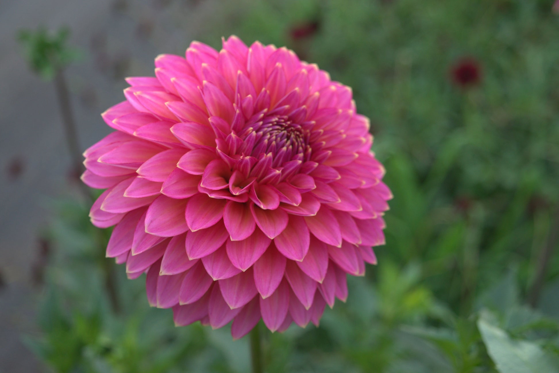 Bloomquist Mojo is a must. This dark pink 4" dahlia shows off gold tips and cranks out the blooms. The stems are strong, making it a dream for bouquet work!